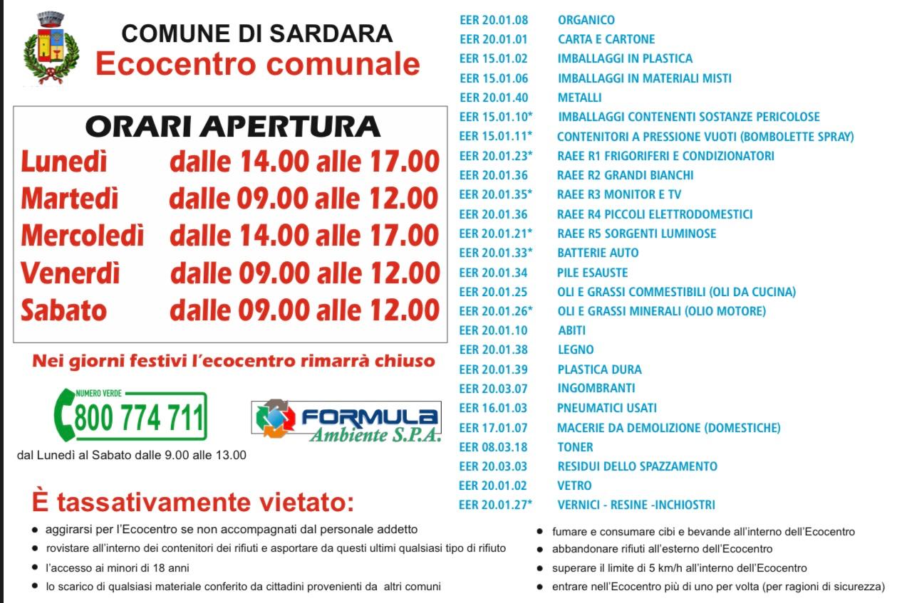 Ecocentro Comunale Ambiente e territorio 14 gennaio 2026 Nuovi orari Ecocentro Comunale- Orari Ecocentro Sardara- Orari Ecocentro Unione dei Comuni